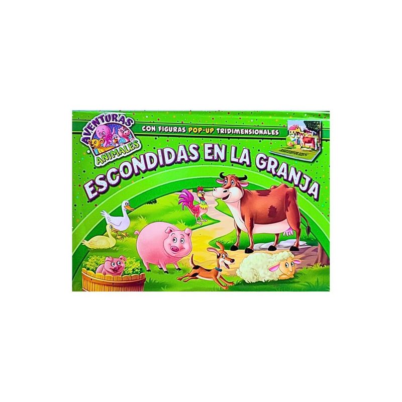 Libro infantil interactivo con animales en 3D que invita a los niños a descubrir y buscar personajes escondidos en la granja. Ideal para estimular la imaginación, la observación y el amor por la lectura.