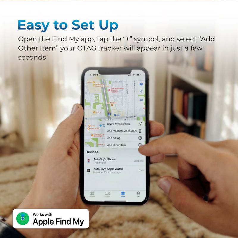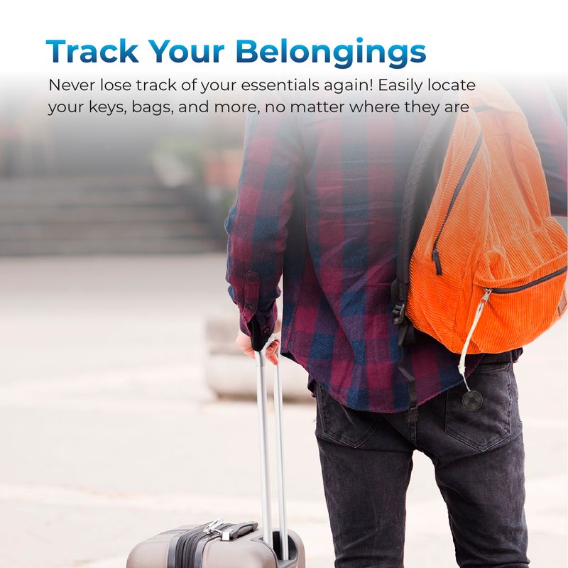 Rastreador Personal AutoSky (compatible con Apple Find My) — Funciona igual que un AirTag, pero con la calidad y respaldo AutoSky. Úsalo para llaves, billetera, mochila, equipaje o el collar de tu mascota (identificación) y localízalos desde tu iPhone con la app Buscar (Find My). Configuración en 1 minuto, sin suscripciones, alertas cuando lo dejas atrás, Modo Perdido y tono audible para encontrarlo cerca.