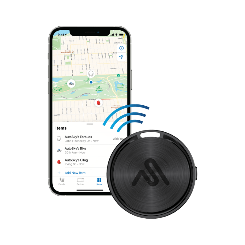 Rastreador Personal AutoSky (compatible con Apple Find My) — Funciona igual que un AirTag, pero con la calidad y respaldo AutoSky. Úsalo para llaves, billetera, mochila, equipaje o el collar de tu mascota (identificación) y localízalos desde tu iPhone con la app Buscar (Find My). Configuración en 1 minuto, sin suscripciones, alertas cuando lo dejas atrás, Modo Perdido y tono audible para encontrarlo cerca.