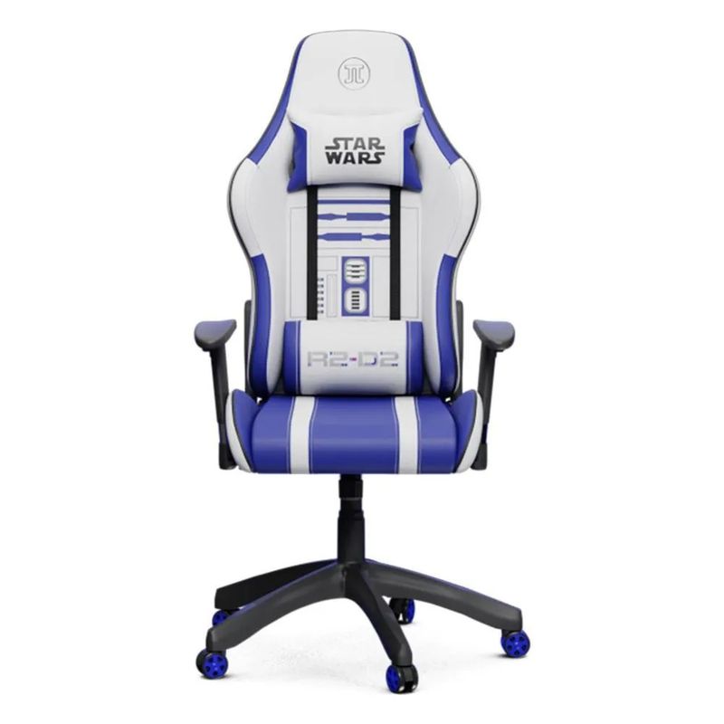 Silla ergonómica gaming con diseño R2-D2 que ofrece comodidad durante largas horas frente al PC. Su respaldo alto, espuma de alta densidad y apoyabrazos 2D brindan postura correcta y soporte lumbar. El acabado en blanco y azul le da un toque único para fans de Star Wars.